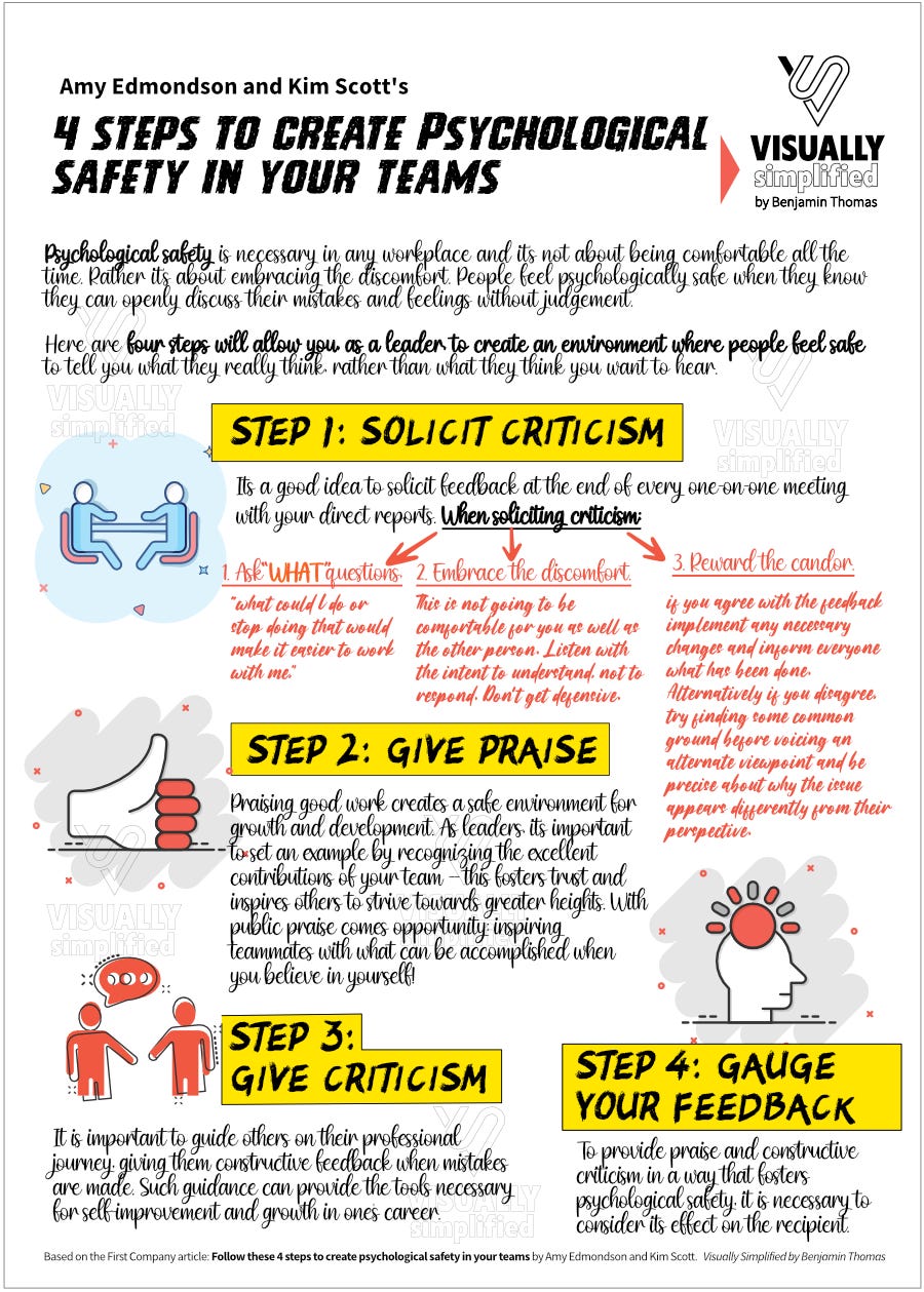 Visual 010: 4 Steps To Create Psychological Safety In Your Teams by Amy Edmondson and Kim Scott